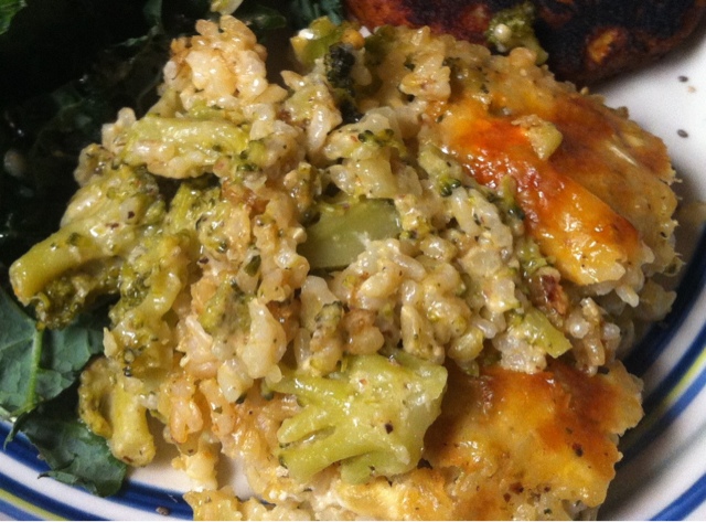 - Pour cheese sauce evenly over the broccoli and rice.